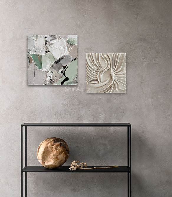✔ご購入前に必ず以下のURLをご確認頂き納得した上でのご購入をお願い致します。 22.7センチ×22.7センチ・厚み1.5センチ Sサイズより約5センチupとなりますので一段と満足感・存在感を得ることができるサイズになります。 溶け込むデザイン性・ナチュラルなモスグリーンカラー ◆SheArtオリジナル・ニュアンスコレクションより。 ナチュラル質感・ザラつき質感・ストーン・ホワイト・各種グレー・各種グリーン・ほんのりベージュによるモードとモダンが調和されたオシャレなデザイニング。 スッキリとしたインテリア等のアクセントに是非。 【注】画像を拝見していただけますとお分かりいただるかと思いますがカラーものに関しましては角度や日差しによるお色味の変化は必ずございます。 全てをご納得いただいた方のみのご購入をお願い致します。 ● イメージしていただきやすいよう背景とアートを合成し画像作成をしています。 スケール感は近しく作成するようにしておりますが、雰囲気によりサイズ感や見え方が異なる為、ご購入前に作品のサイズを必ずご確認くださいますようお願い致します。 転売・画像の転載は一切禁止と致します。 発覚した場合法に基づきそれに値するペナルティを課す事と致します。 - - - - - - - - - - - - - - - - - - - - - - - - - - テクスチャーの触り心地は硬く厚みがあり素材によりザラつきのあるものもございます。 お水などが万が一飛び散ってしまった場合でも素早く優しく拭き取って頂ければ問題はごさいません。 ゴツゴツとした箇所によってはかなりの力で肌に摩擦を起こしますとお怪我の元になりますので肌への摩擦にはお気を付けて下さい。 お子様が触れられる高さ・水周り・直射日光は避けての配置をおすすめいたします。 - - - - - - - - - - - - - - - - - - - - - - - - - - ・・・ ¨̮ モダン モダンアート モダンインテリア 北欧 リゾートモダン インテリア 春 夏 秋 冬 動物 アート海 空 雲 太陽 花 植物 モノトーンハウス 原画 一点物 アートパネル ウォールアート 海外 海外インテリア オシャレ 海外風 ニュアンス モノトーン 白黒 カラフル シンプル スタイリッシュ かわいい 結婚式 お誕生日 結婚祝い 新居 プレゼント ギフト お祝い シャビーシック ウェルカムスペース アンティーク ウエディング ドライフラワー ポスター モビール 現代アート コンテンポラリーアート テクスチャーアート ニュアンスアート アルコールインクアート レジンアート ナチュラルアンティーク モダンデザイン ナチュラルモダン ミクストメディア 抽象画 アンティークモダン 癒し 子供部屋 寝室 リビング サニタリールーム 開店祝い